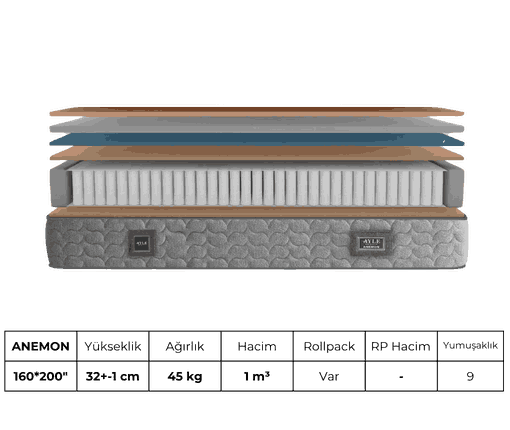 Anemon, içeriğindeki paket yay teknolojisi ve latex süngeri sayesinde kesintisiz bir uyku, mutlu bir sabah vadediyor.